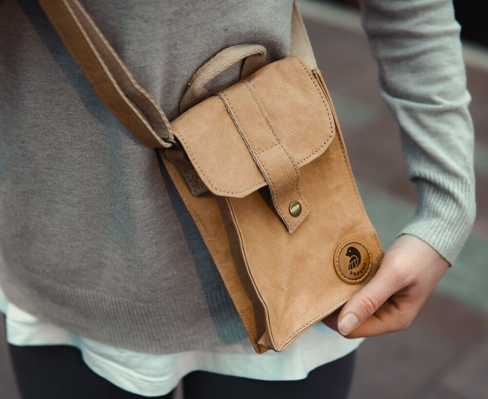 Für kleine und große Smartphones Umhängetasche „BUTTERFLY“ aus waschbarem Kraftpapier | leicht, robust und wasserfest | vegan und nachwachsendes Material | FSC® - zertifiziertes Material | edel minimalistisches Design für Freizeit, Sport, Beruf und Reisen| designed with ♥ in Munich Bavaria